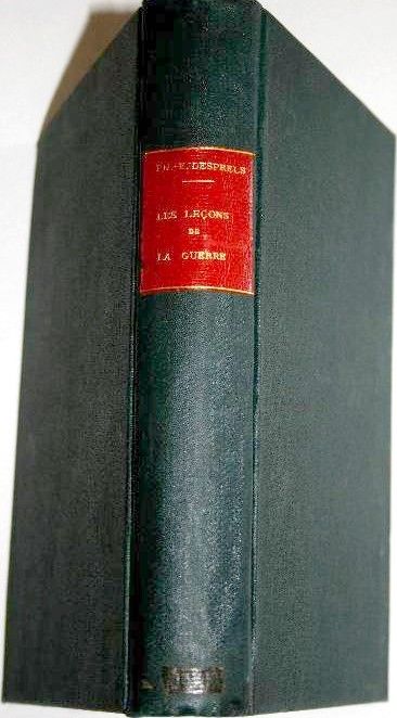 Les Leçons de la Guerre.Paris, A. Ghio, 1880. In-8, 499 p. Relié demi-toile verte à la bradel. Pièce de titre rouge sur le dos. TRES BON ETAT. DESPRELS Ph. E. Colonel d'artillerie en retraite, Commandeur de la Légion d'honneur.Année d’édition :1880 - R 33892
