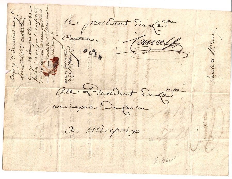 Lettre de l'administration centrale au Président de l'administration municipale de MIREPOIX. au sujet de la contribution mobiliaire